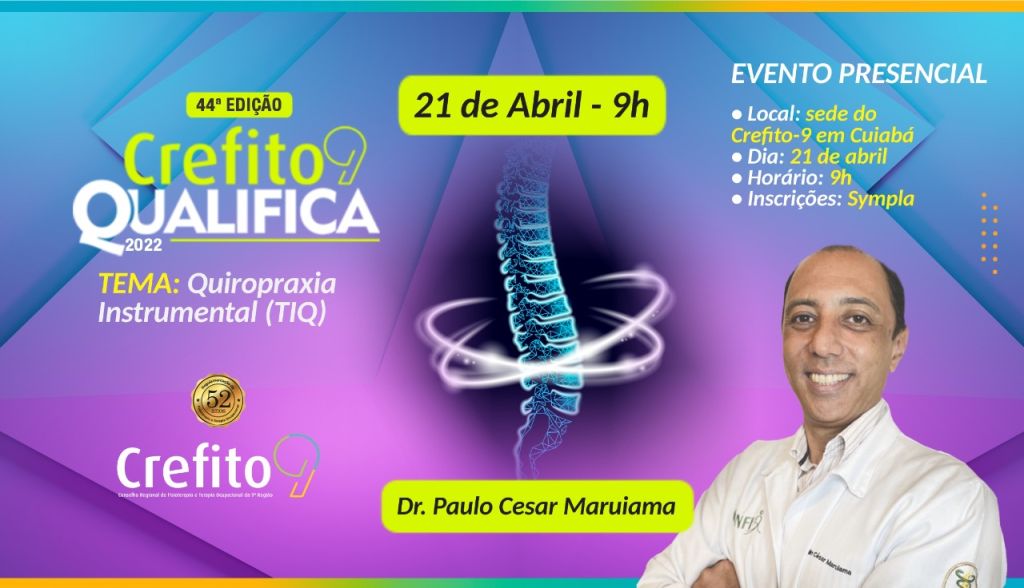 Nesta quinta-feira (21.04), às 9h, acontece a 44ª edição do Crefito9 Qualifica sobre o tema Quiropraxia Instrumental (TIQ), na sede do Conselho Regional de Fisioterapia e Terapia Ocupacional da 9ª Região (Crefito-9), em Cuiabá. O fisioterapeuta especialista em Quiropraxia de São José dos Quatro Marcos, Paulo Cesar Maruiama, falará sobre a técnica e realizará algumas demonstrações práticas.