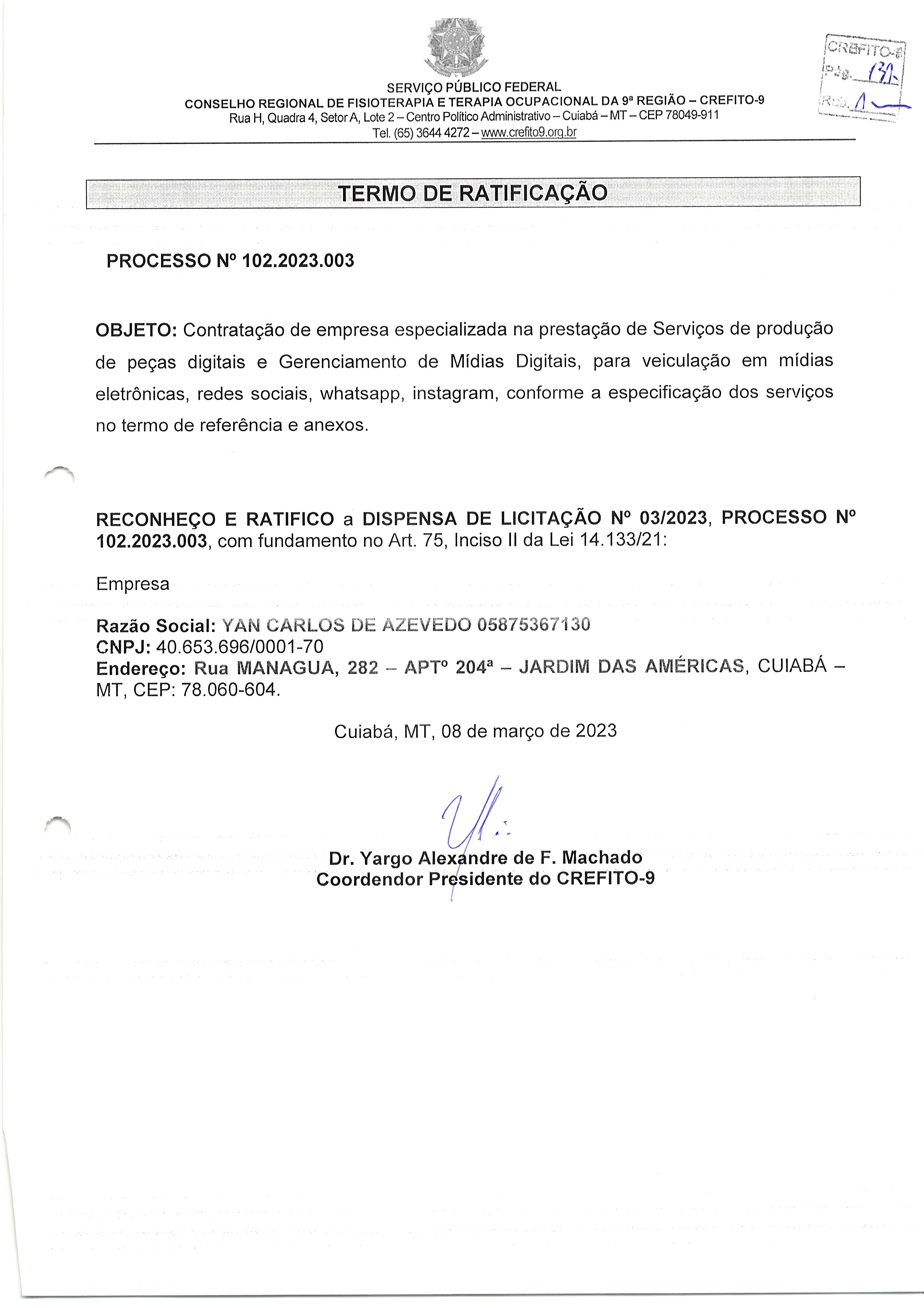 Dispensa nº 03.2023 – Processo 102.2023.003